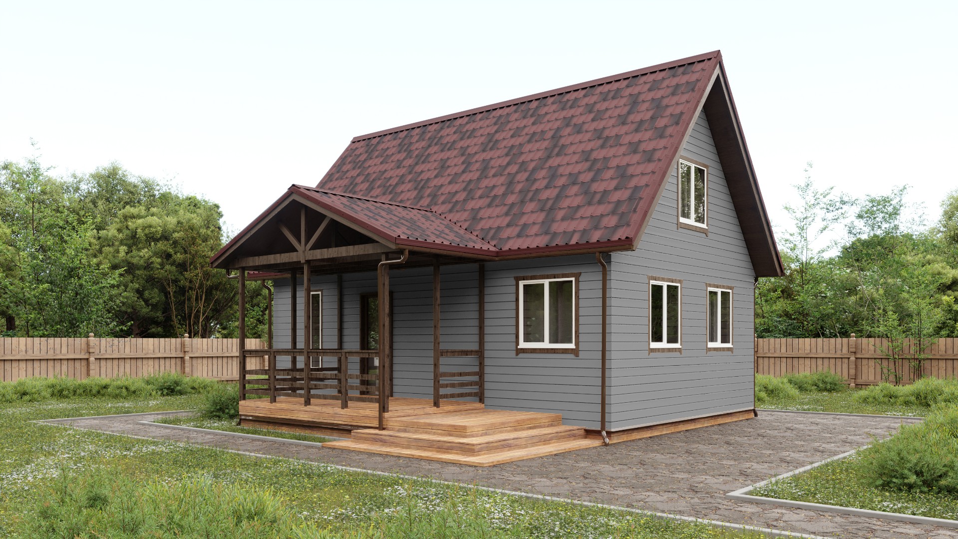Она прекрасно сочетается с деревянными, каменными или домами из кирпича.