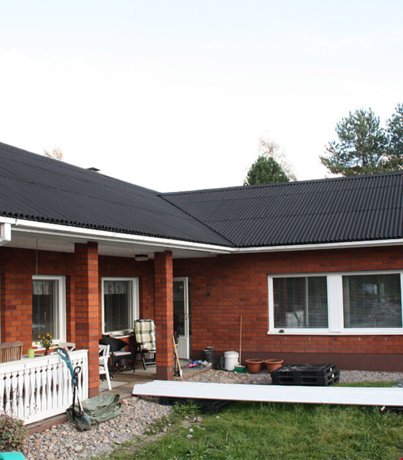Материал черепицы Ондулин Смарт прочный, а цвет не выгорает под солнцем. Работать с ним приятно.