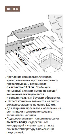 Коньки и рёбра на Ондулине Смарт необходимо закрывать, это защитит дом от попадания осдаков.
