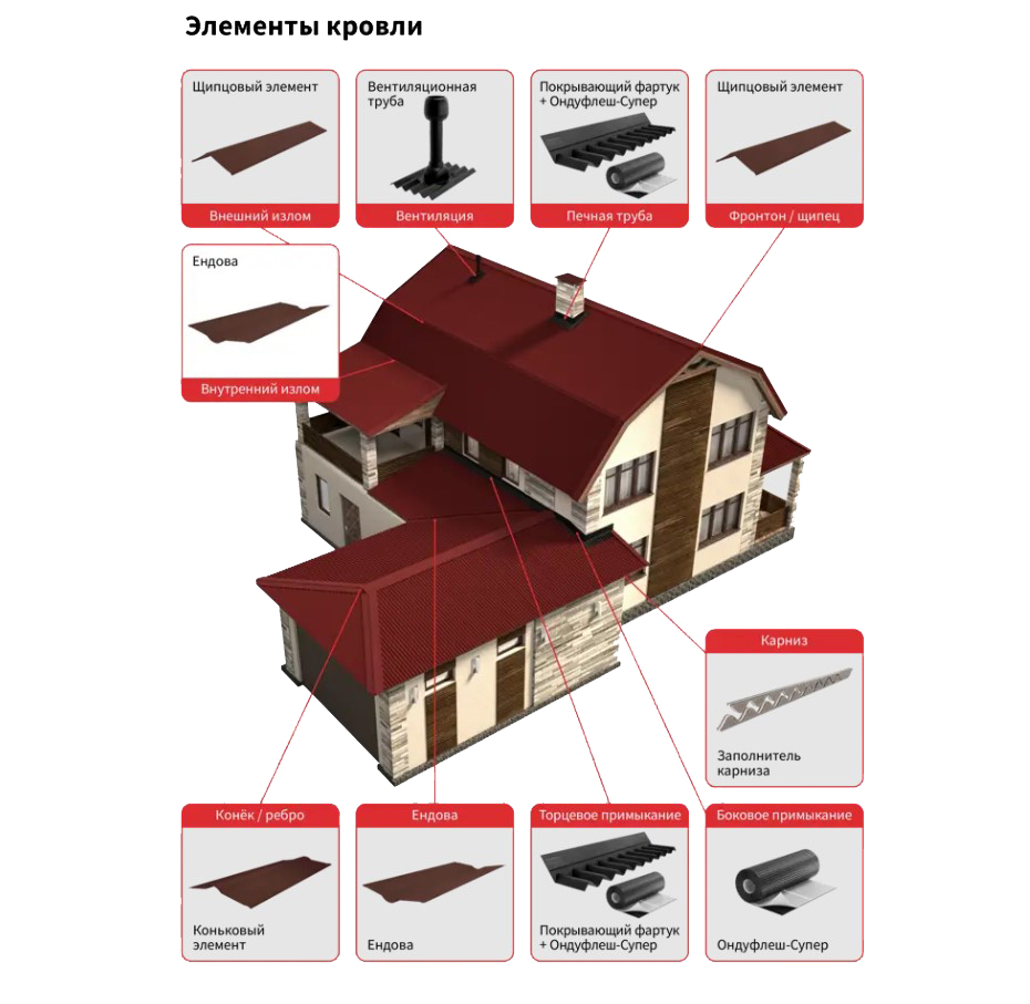 Применяется для укладки крыши, служит достойным оформлением фронтона и внешних изломов крыши Ондулин Смарт.