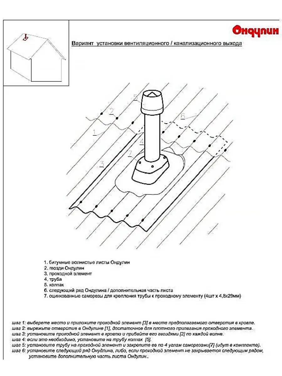 • гвозди "Ондулин" для крепления проходного элемента,